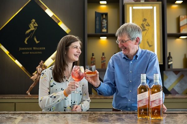 Aimée Gibson (Whisky Specialist) and Jim Beveridge (Diageo Master Blender) with Johnnie Walker Blenders’ Batch Wine Cask Blend