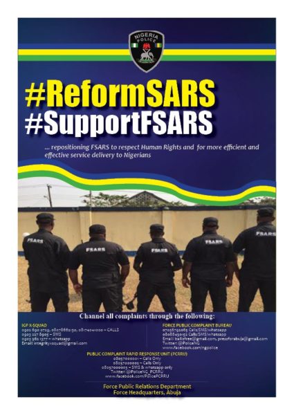 Nigerian Police Force Starts #SupportSARS Campaign; Says Majority Of SARS Officers Are “Good, Disciplined & Commendable”.